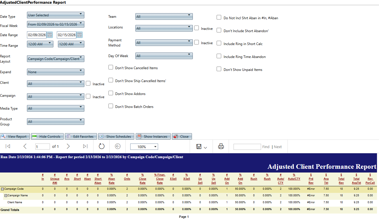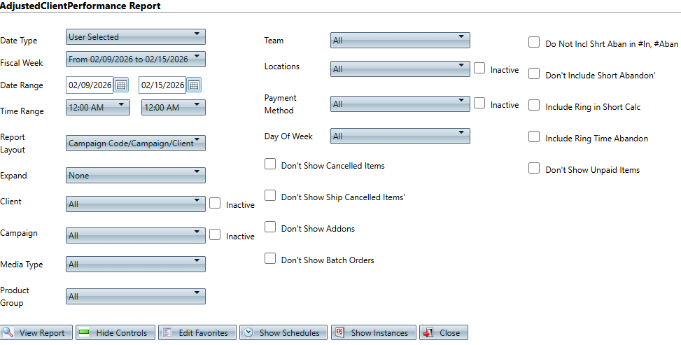 Show Inactive (Campaign) | Show in the report: Checked - show active and inactive Campaigns Unchecked - only show active Campaigns |