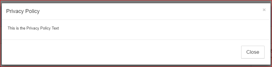 Clicking on Privacy Policy link will initiate a new popup with the body of the Privacy Policy Text displayed