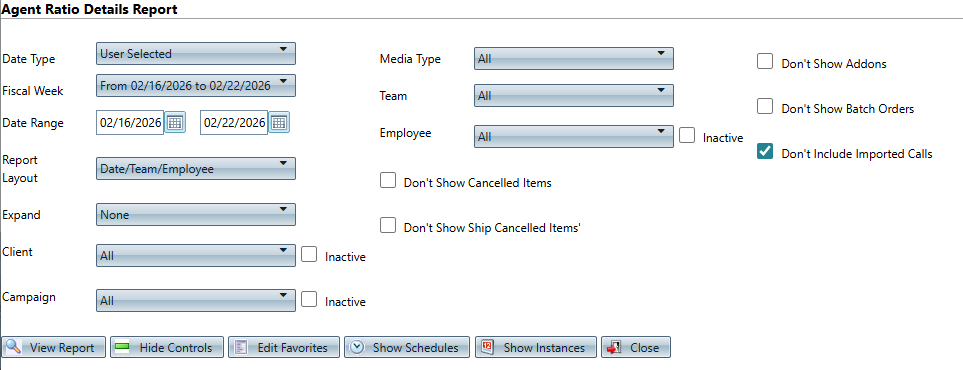 Fiscal Week (only shows during manual run when utilizing User Selected Date Type above) | This will set the below Date Range to the Monday - Sunday date range selected from this drop down. |