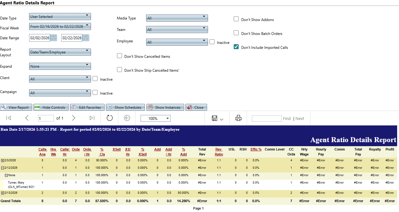 | Rev Ratio | Royalties / (Base Wage Earned + Commissions) : 1 |