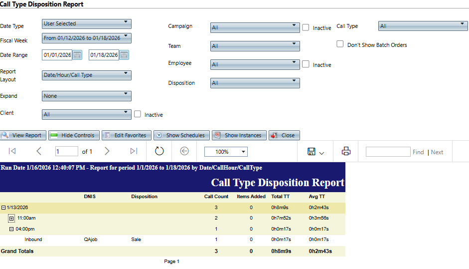 - Unchecked - show calls that are part of a data entry batch