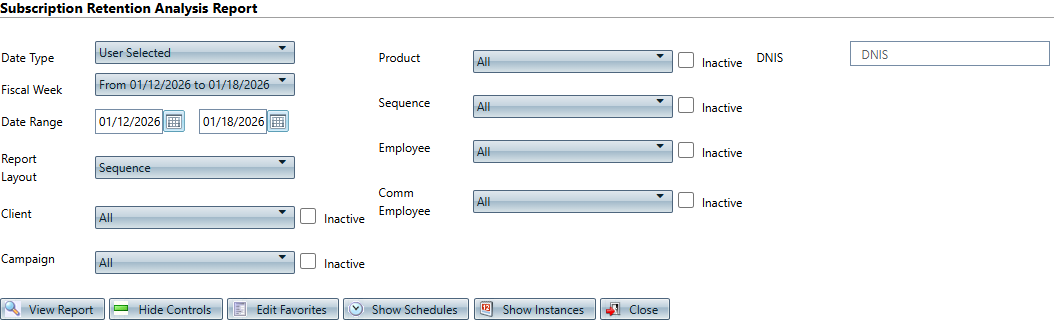 Show Inactive (Comm Employee) | Show in the report: