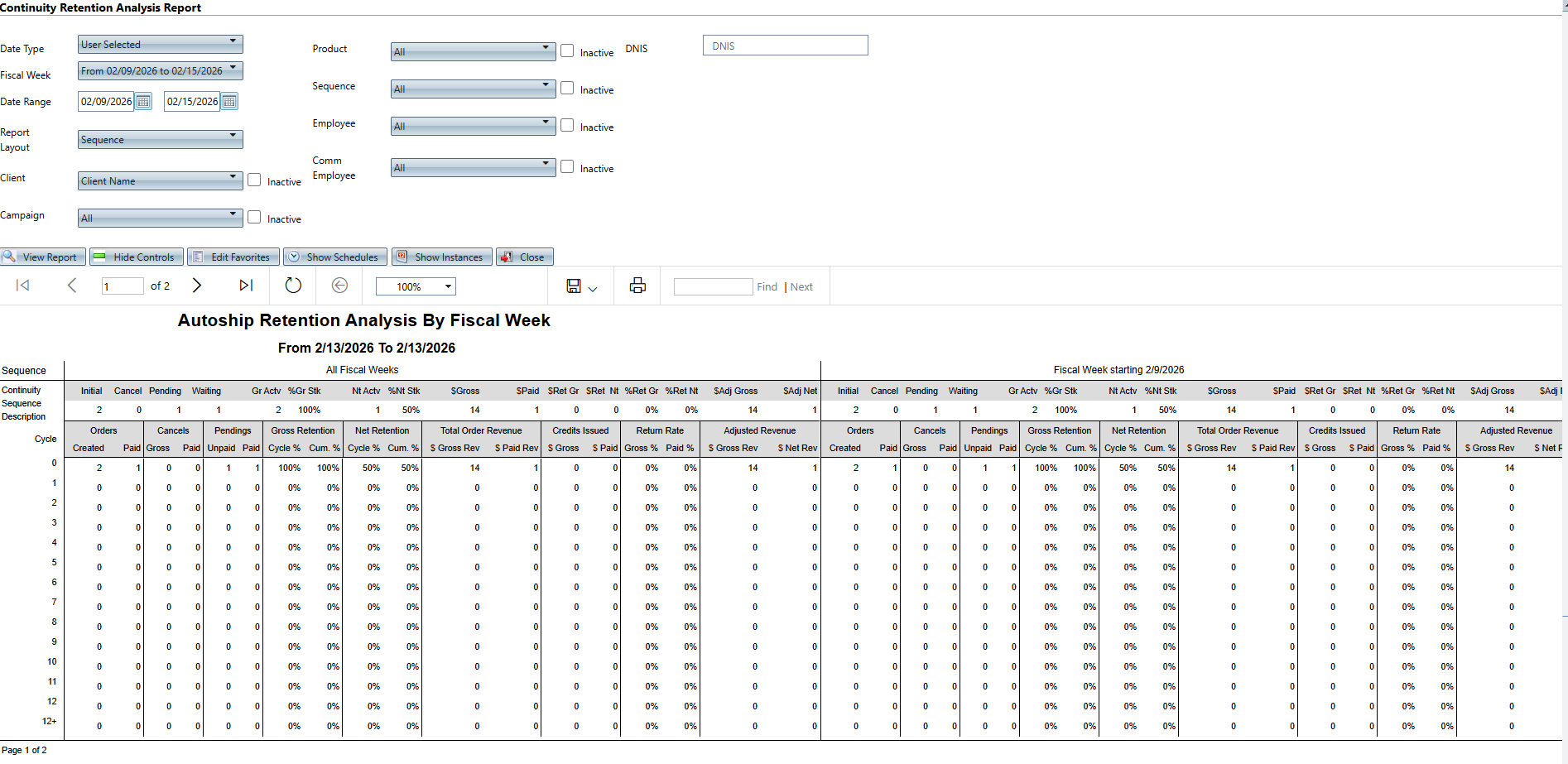 Orders Created | Number of continuities created that cycle |