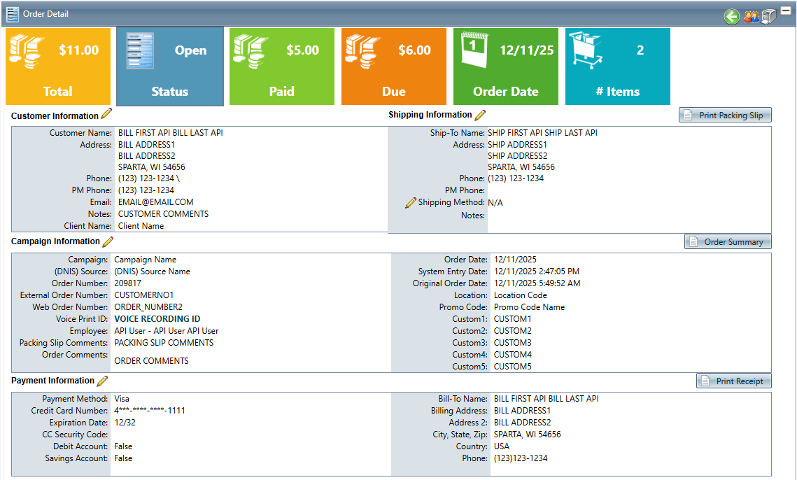 The Master Customer Address can be edited from both the Customer Detail Center and the Order Detail Screen. The same Edit Customer Information pop-up will appear from both locations.