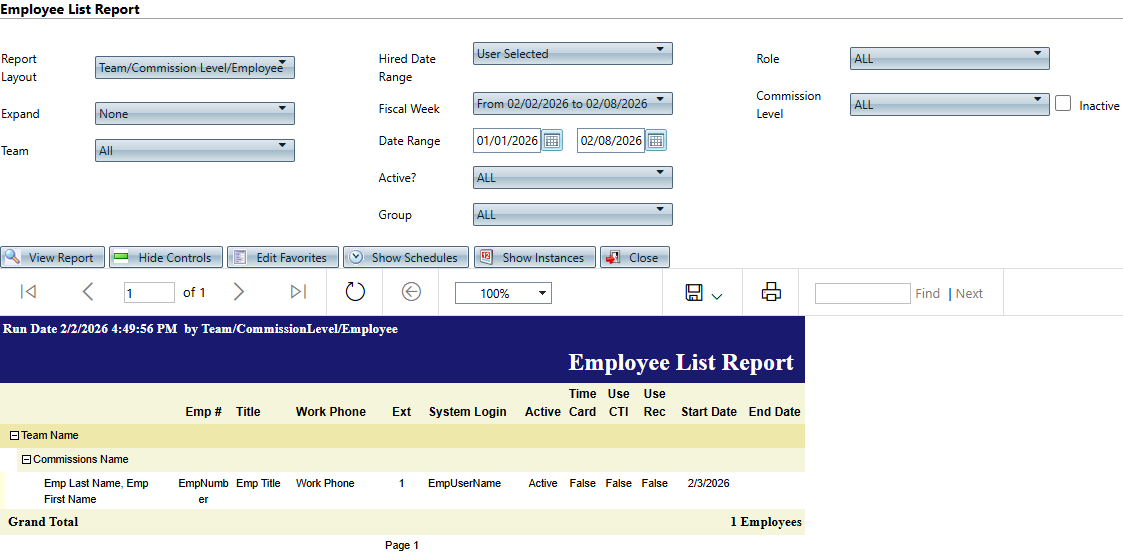 - Employee List - A List of Employees that shows the name, telephone #, extension and employee number
