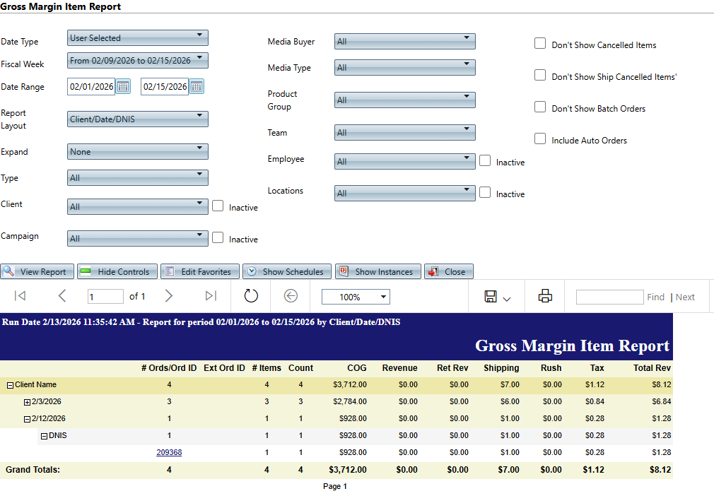 Don't Show Ship Cancelled Items | - Checked - do not include items in 'Item Shipment Cancelled' status in the results.