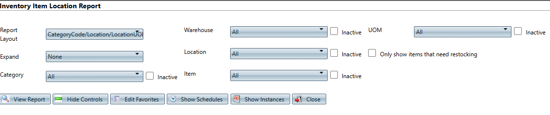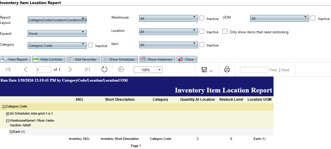 Path: Reports > Inventory Reports > Inventory Item Location Report