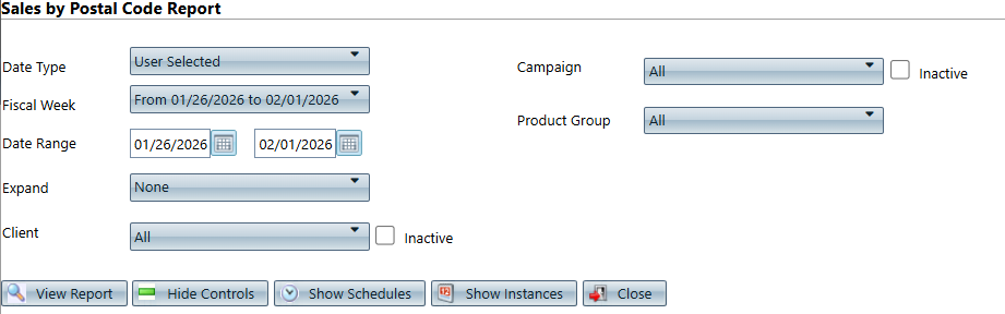 Path: Reports > Sales Reports > Sales by Postal Code Report