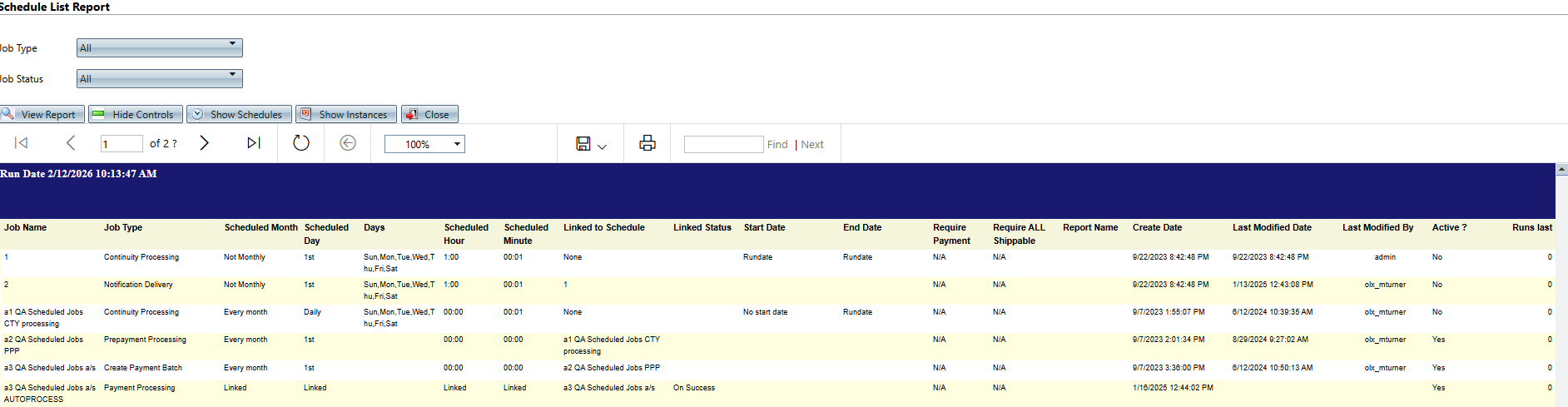 Scheduled Month | - Linked - job is linked and will run based off that job's settings