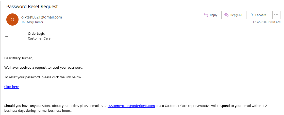 The link provided within the Click here text will direct your customer to the Password Reset page.