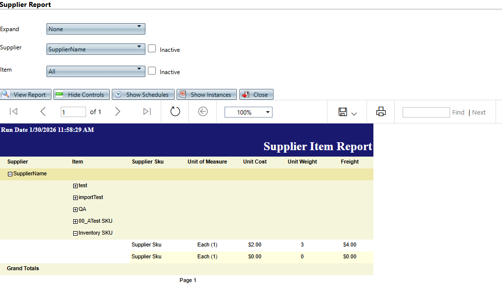 - Supplier Item Report - View supplier item data.