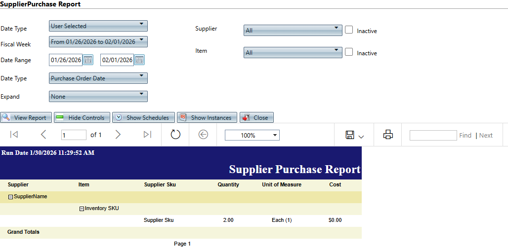 Path: Reports > Inventory Reports > Supplier Purchase Report