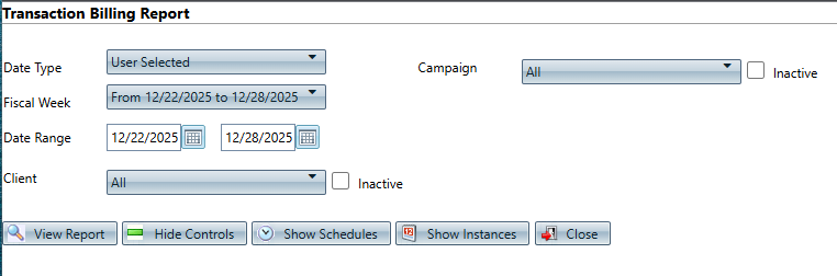 - The previous week starting with Sunday will automatically be set in the Date Range